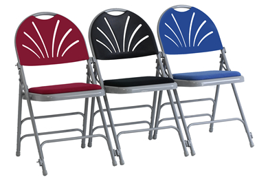 Durable contoured and radiused polypropylene seat and back in Burgundy, Charcoal or Blue