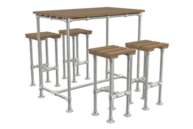 The Scaffold OUTDOOR breakout Low and High dining stool combine raw strength with contemporary style and a weatherproof finish. Use with our Scaffold Outdoor dining and poseur tables to complete the set.